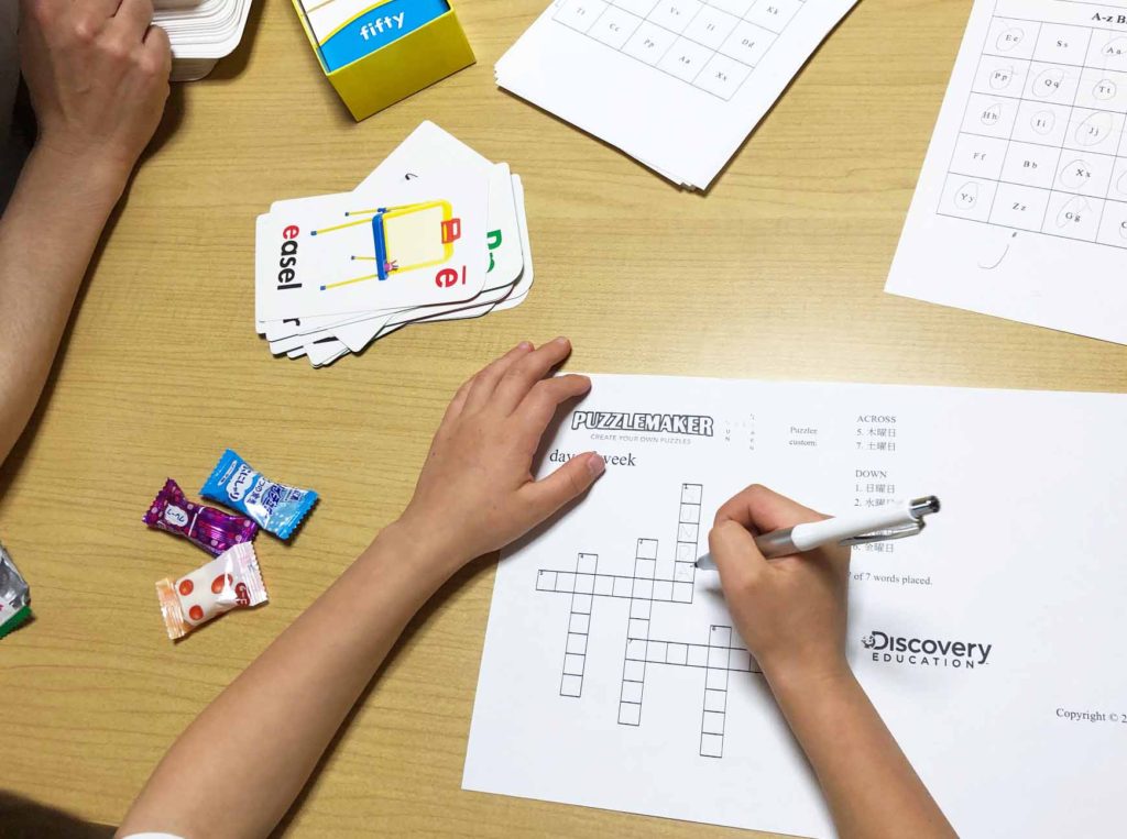 この日はカードの写真を見て、単語を書き、クロスワードパズルを完成させました。