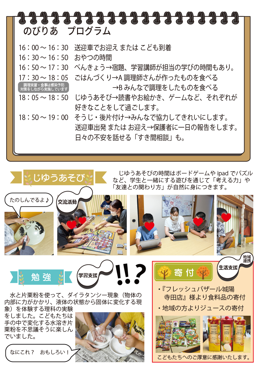 のびりあ通信8月~9月
